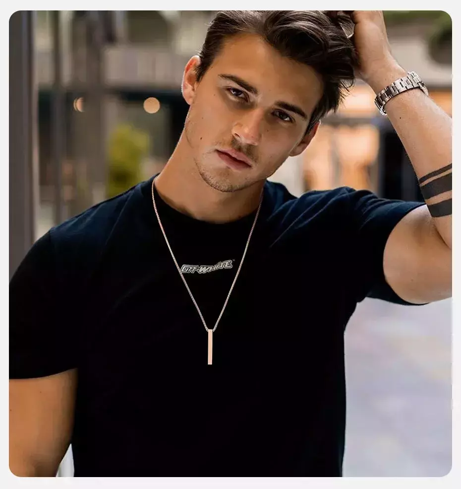 Nome do Colar: Vnox Axis – Colar Pilar 3D em Aço Inoxidável